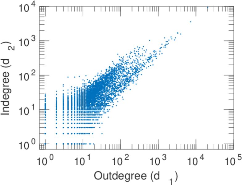 | In/outdegree correlation | ρ± = | +0.788 544