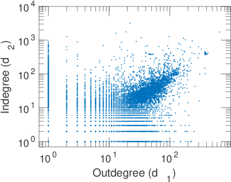 | In/outdegree correlation | ρ± = | +0.593 911
