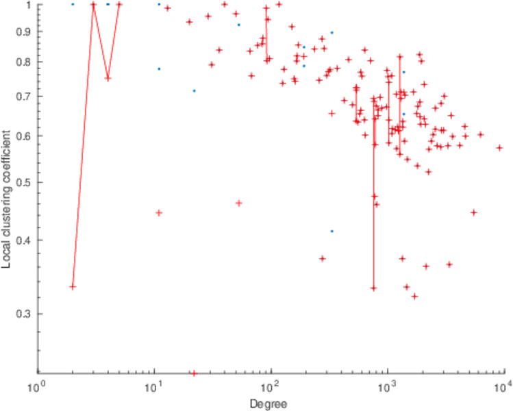 This page shows the average neighbor degree distribution for all networks to which it applies and for which it was computed.