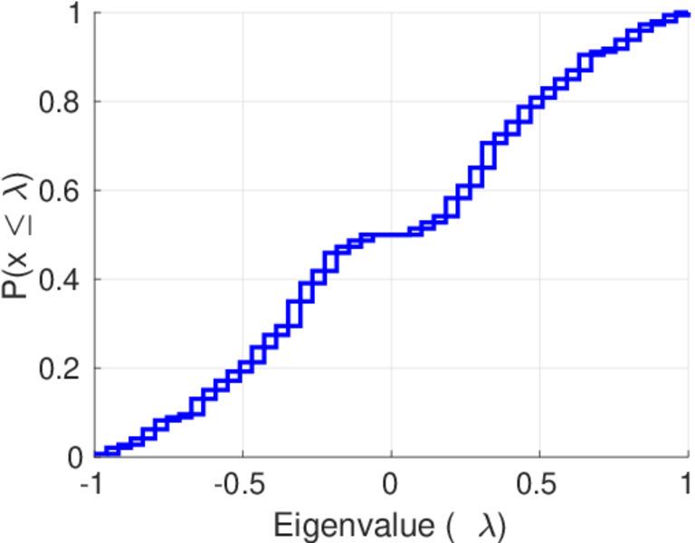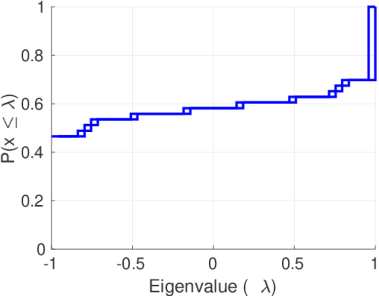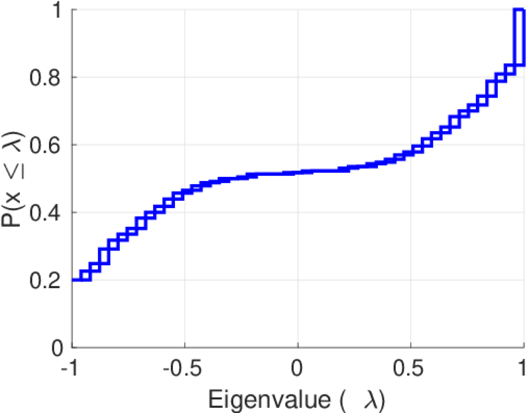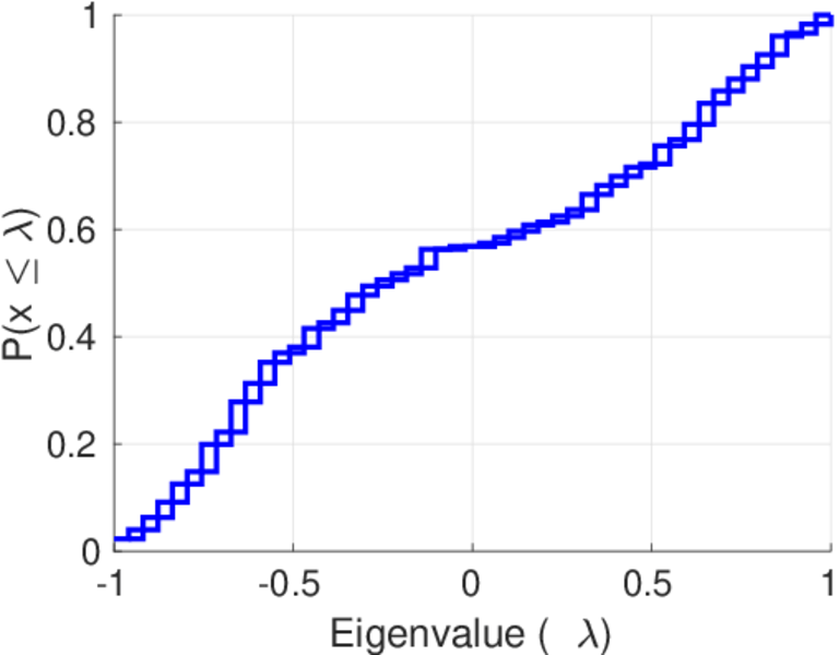 This page shows the spectral distribution of the normalized adjacency matrix for all networks to which it applies and for which it was computed.
