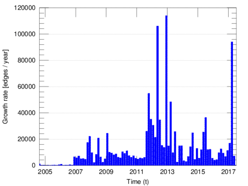 edge represents an edit. The dataset includes the timestamp of each edit.