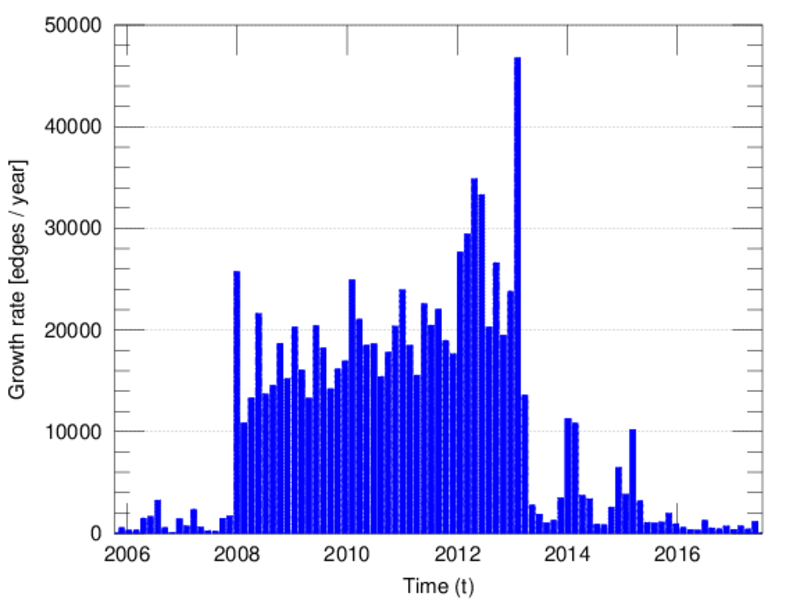 Each edge represents an edit. The dataset includes the timestamp of each edit.