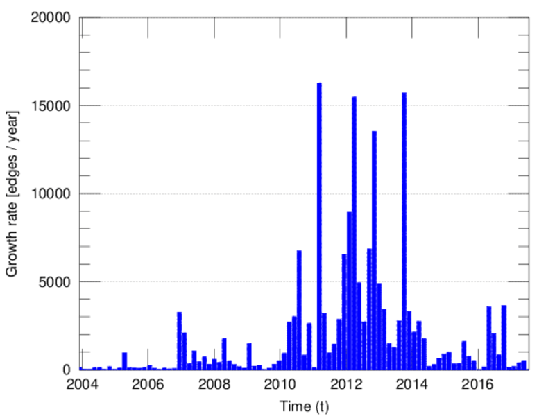 edge represents an edit. The dataset includes the timestamp of each edit.