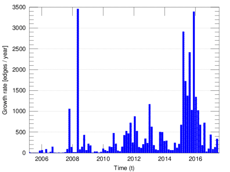 represents an edit. The dataset includes the timestamp of each edit.