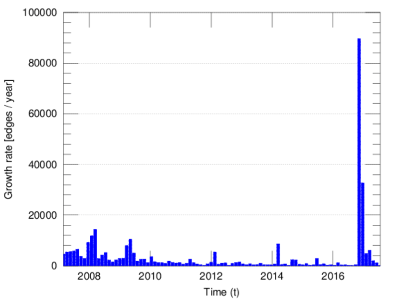 represents an edit. The dataset includes the timestamp of each edit.