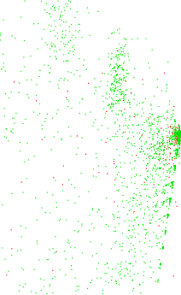 users and pages from the Interlingue Wikipedia, connected by edit events. Each