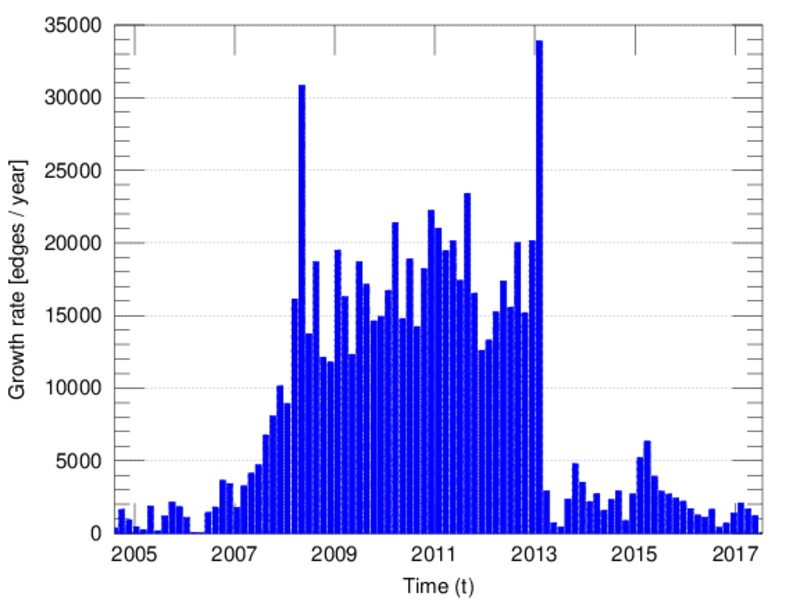 edge represents an edit. The dataset includes the timestamp of each edit.