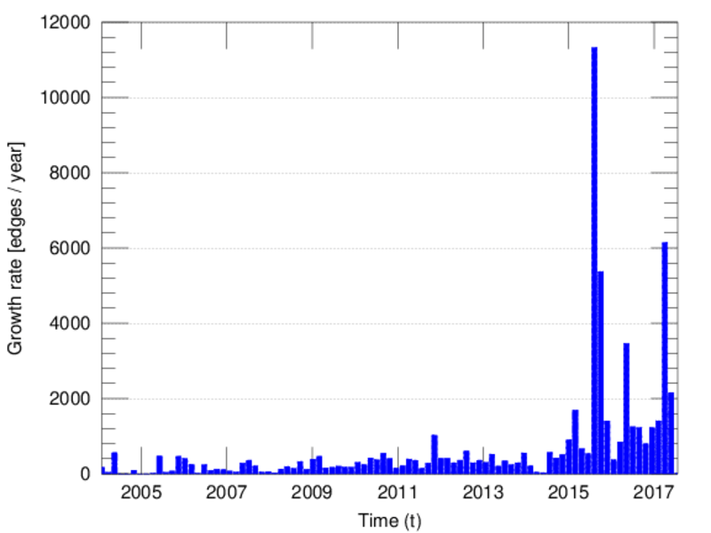 represents an edit. The dataset includes the timestamp of each edit.