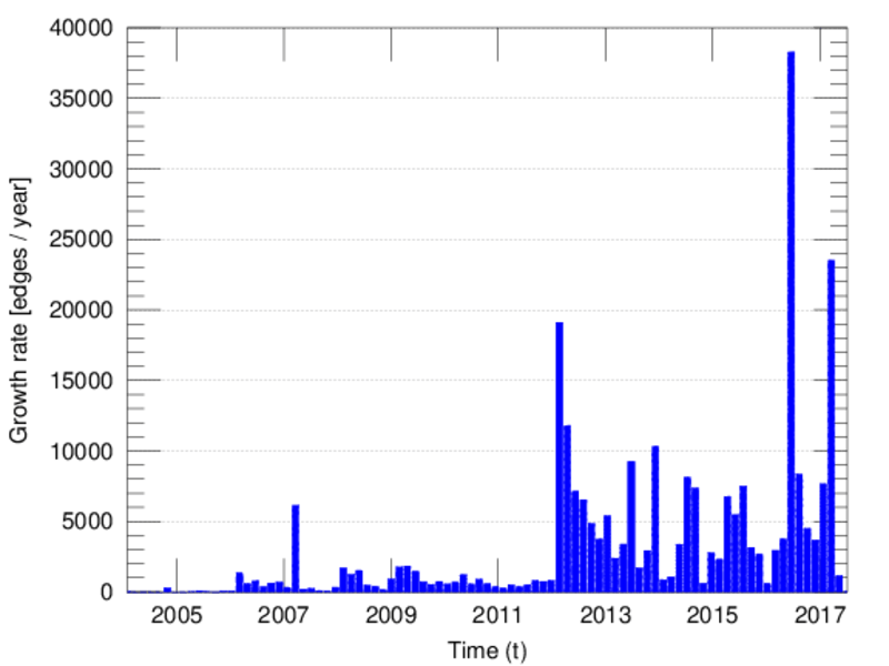 edge represents an edit. The dataset includes the timestamp of each edit.