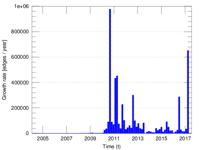 represents an edit. The dataset includes the timestamp of each edit.