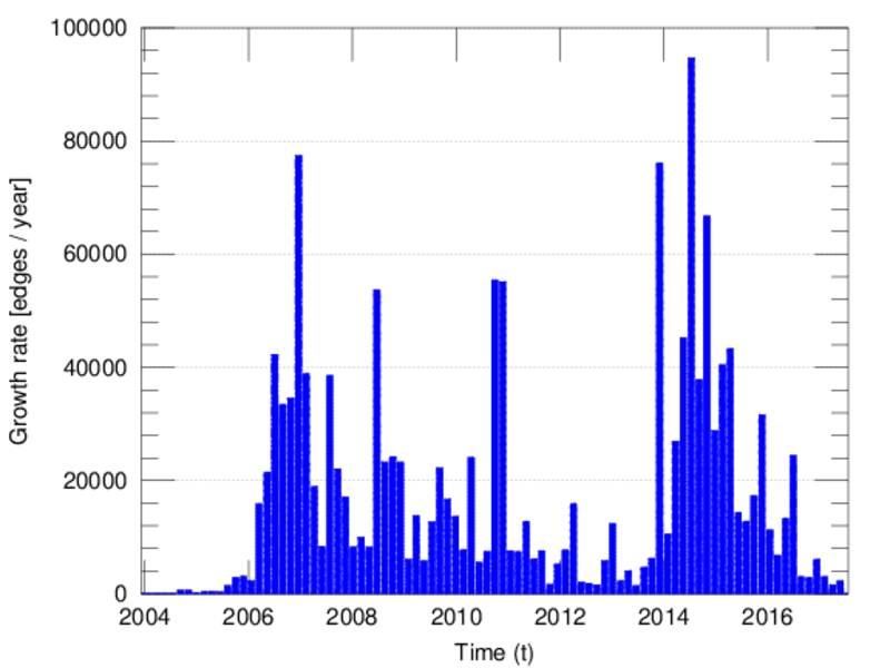 edge represents an edit. The dataset includes the timestamp of each edit.
