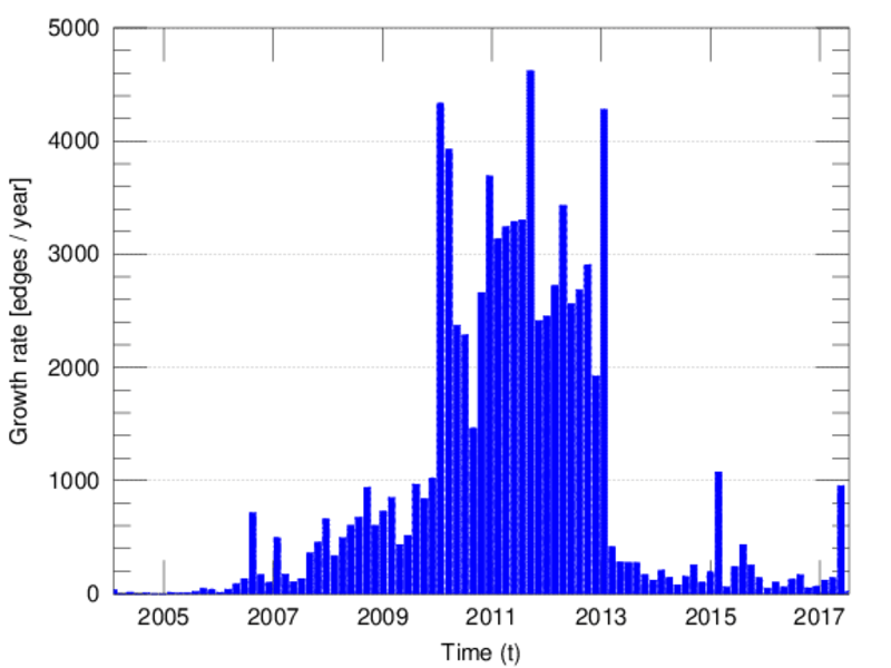 represents an edit. The dataset includes the timestamp of each edit.