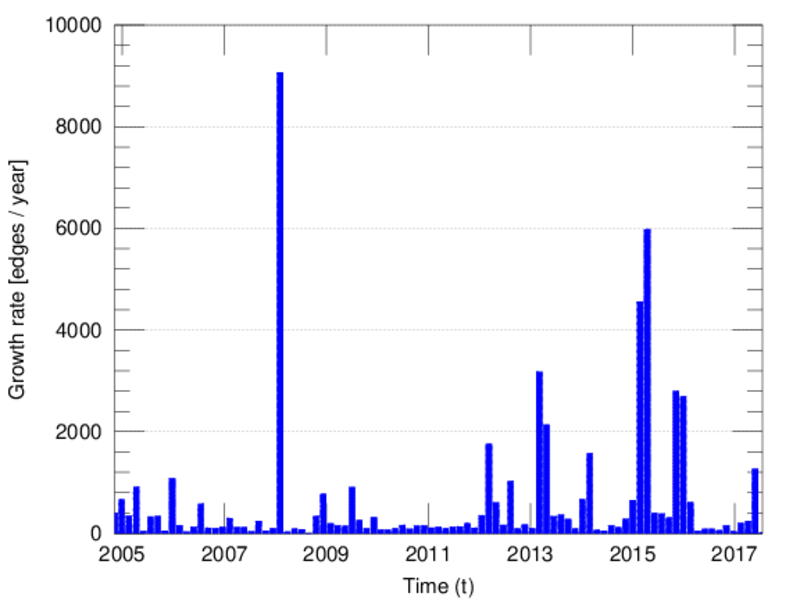 represents an edit. The dataset includes the timestamp of each edit.
