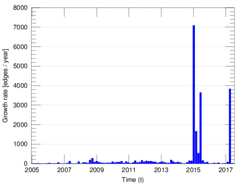 edge represents an edit. The dataset includes the timestamp of each edit.