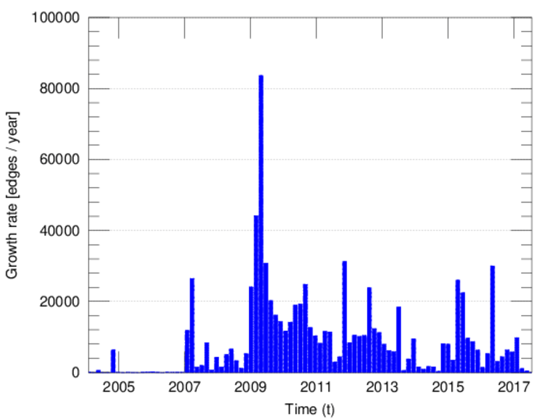 represents an edit. The dataset includes the timestamp of each edit.