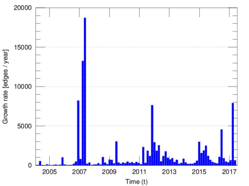 represents an edit. The dataset includes the timestamp of each edit.