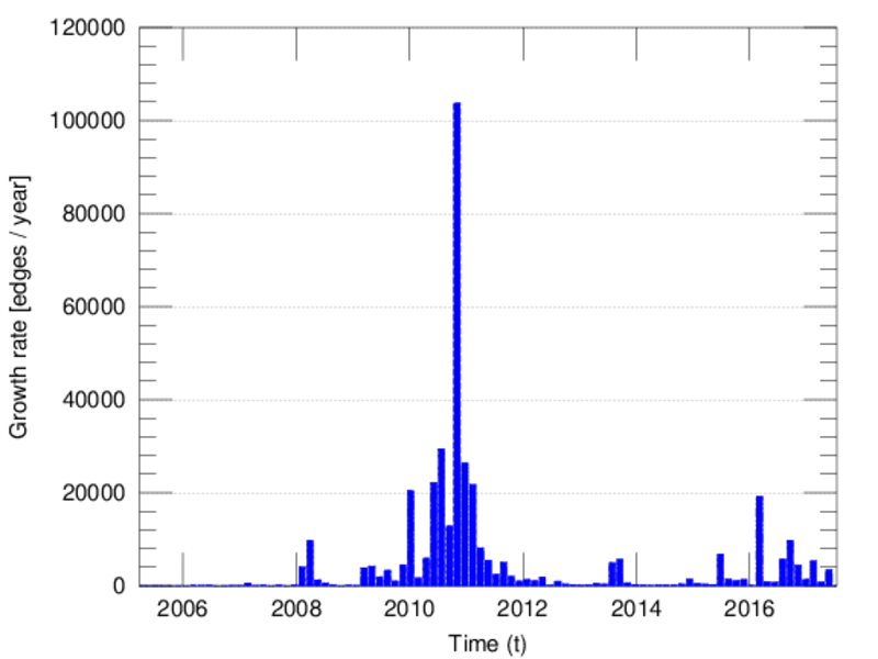 edge represents an edit. The dataset includes the timestamp of each edit.