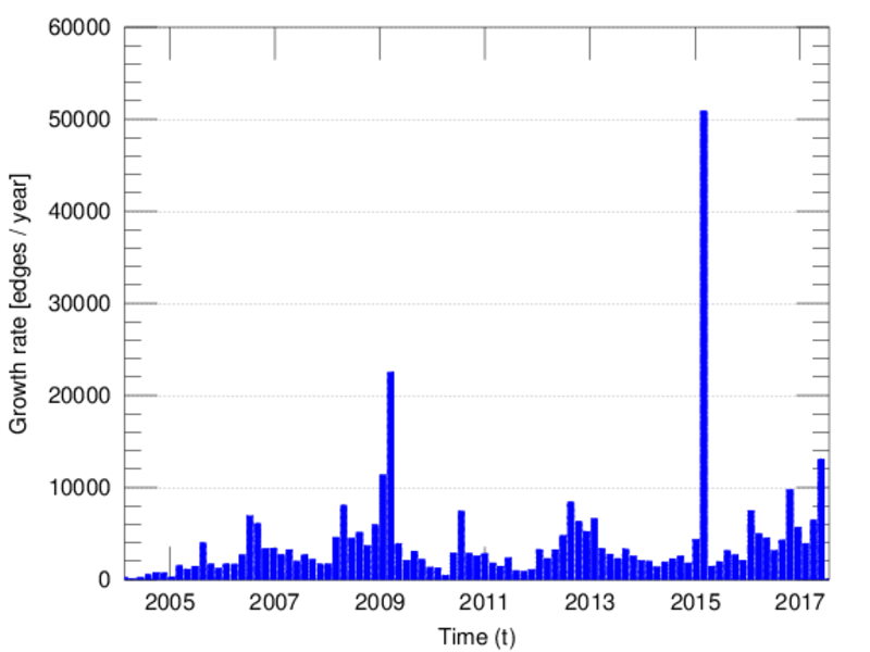 represents an edit. The dataset includes the timestamp of each edit.