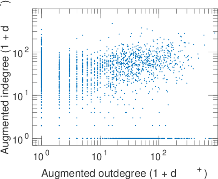 | In/outdegree correlation | ρ± = | +0.191 927