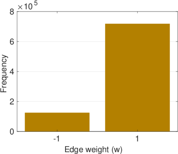 distrust links. Edges have the weight +1 for trust and −1 for distrust. Note