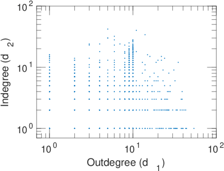 | In/outdegree correlation | ρ± = | +0.303 441