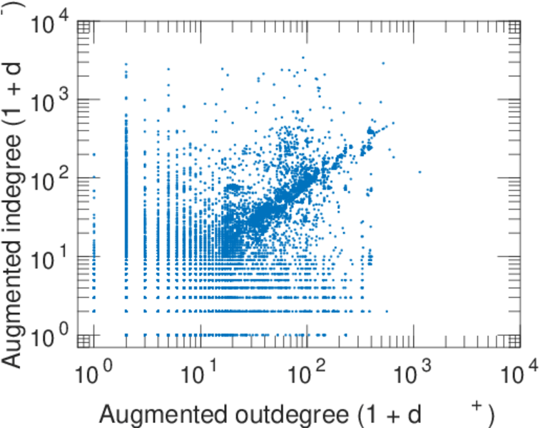 | In/outdegree correlation | ρ± = | +0.851 140