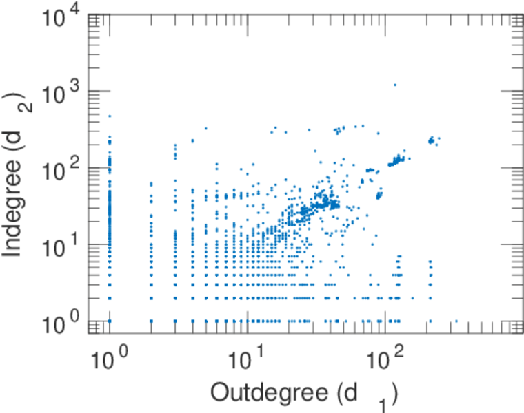 | Maximum indegree | d−max = | 1,208