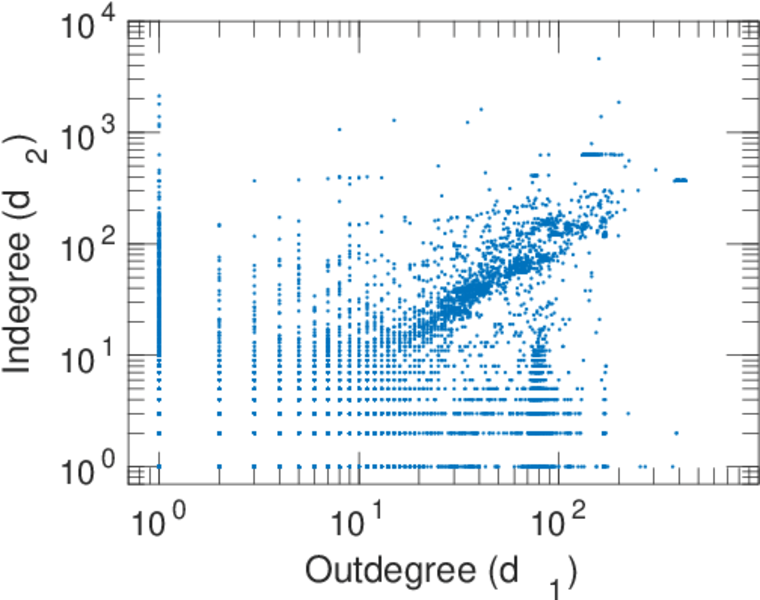 | In/outdegree correlation | ρ± = | +0.670 466
