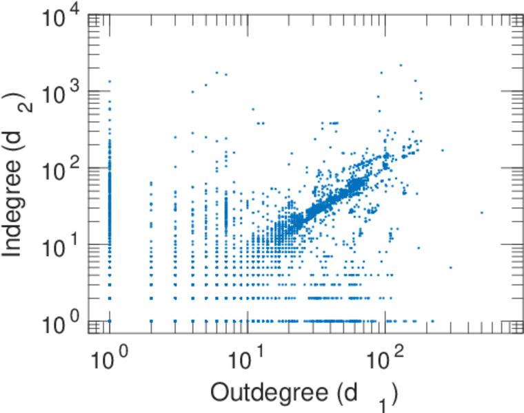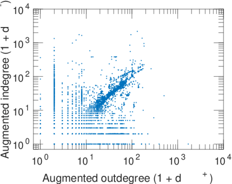 | In/outdegree correlation | ρ± = | +0.699 099