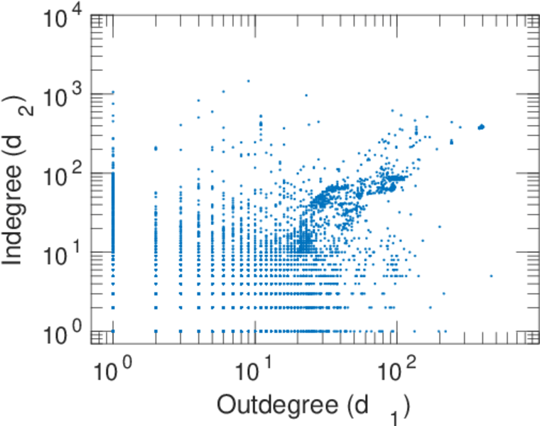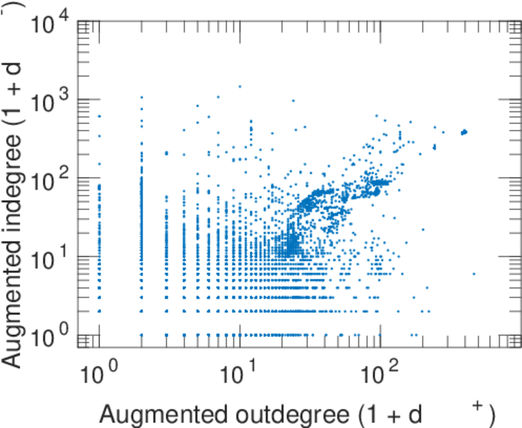 | In/outdegree correlation | ρ± = | +0.681 418