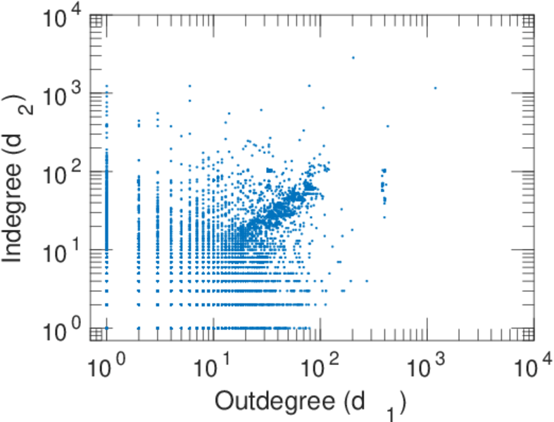 | In/outdegree correlation | ρ± = | +0.535 376