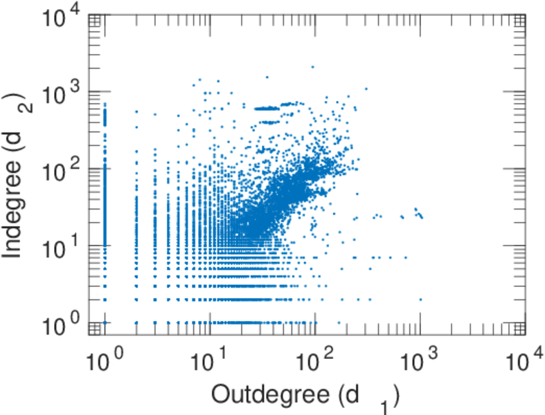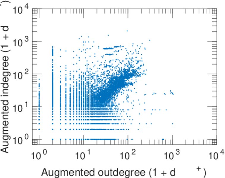 | In/outdegree correlation | ρ± = | +0.443 652