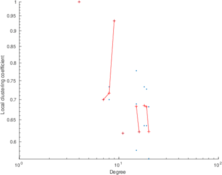 This page shows the average neighbor degree distribution for all networks to which it applies and for which it was computed.